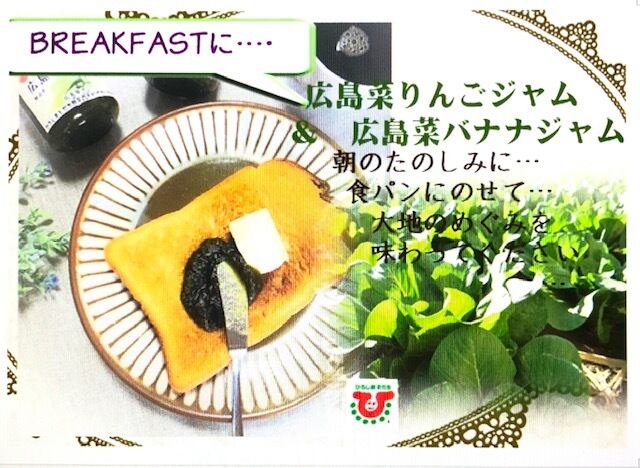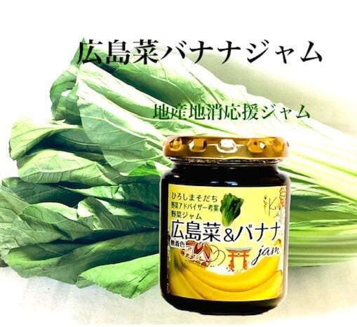 広島伝統野菜、広島菜を厳選したバナナと一緒にブレンドした野菜と果物のミックスジャムです。圃場から元気で大きな葉を仕入れ、バナナとレモンを加えて甘酸っぱい味に。シンプルなパンに手軽に塗って食べていただけるよう何度も試作し作りました。パン好きな方や野菜嫌いのお子様にもおススメで、お土産にもよろこんでいただけるイチオシのヘルシーなジャムです。